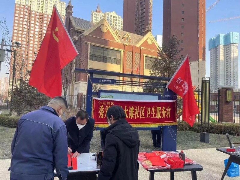寫春聯(lián)、貼福字,是中國(guó)人過年的傳統(tǒng)習(xí)俗,象征著吉祥如意,是人們表達(dá)向往美好生活的一種方式。春節(jié)將至,為豐富小區(qū)文化生活,營(yíng)造健康祥和、積極向上的文化氛圍和節(jié)日氣氛,提前為業(yè)主們送上新春的祝福,百酈灣物業(yè)服務(wù)中心于1月2日,特邀請(qǐng)小區(qū)部分書法愛好者業(yè)主們,舉辦了“迎新春、送春聯(lián)”新春送?;顒?dòng)。同時(shí)邀請(qǐng)秀川街道大灘社區(qū)衛(wèi)生服務(wù)站的醫(yī)護(hù)人員現(xiàn)場(chǎng)為小區(qū)眾多老年人免費(fèi)測(cè)量血壓、測(cè)血糖,吸引了業(yè)主們踴躍參與。