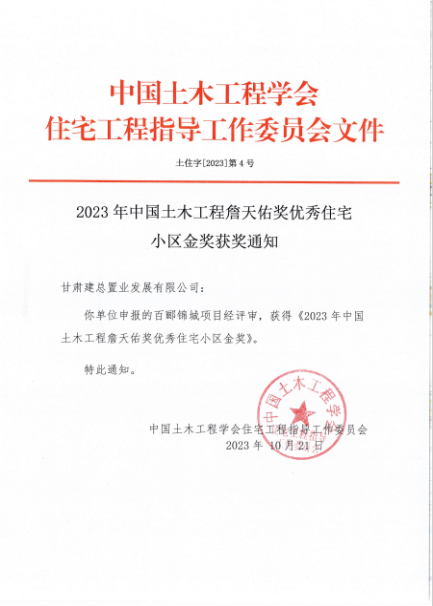 “詹天佑獎優(yōu)秀住宅小區(qū)金獎”是百酈錦城項目繼2022年榮獲地產(chǎn)行業(yè)最高榮譽“廣廈獎”之后又一國家級重要獎項,是甘肅建投首個同時獲得“廣廈獎”和“詹天佑獎優(yōu)秀住宅小區(qū)金獎”的項目,充分體現(xiàn)了業(yè)界對甘肅建投地產(chǎn)質(zhì)量、品質(zhì)及科技創(chuàng)新的肯定。