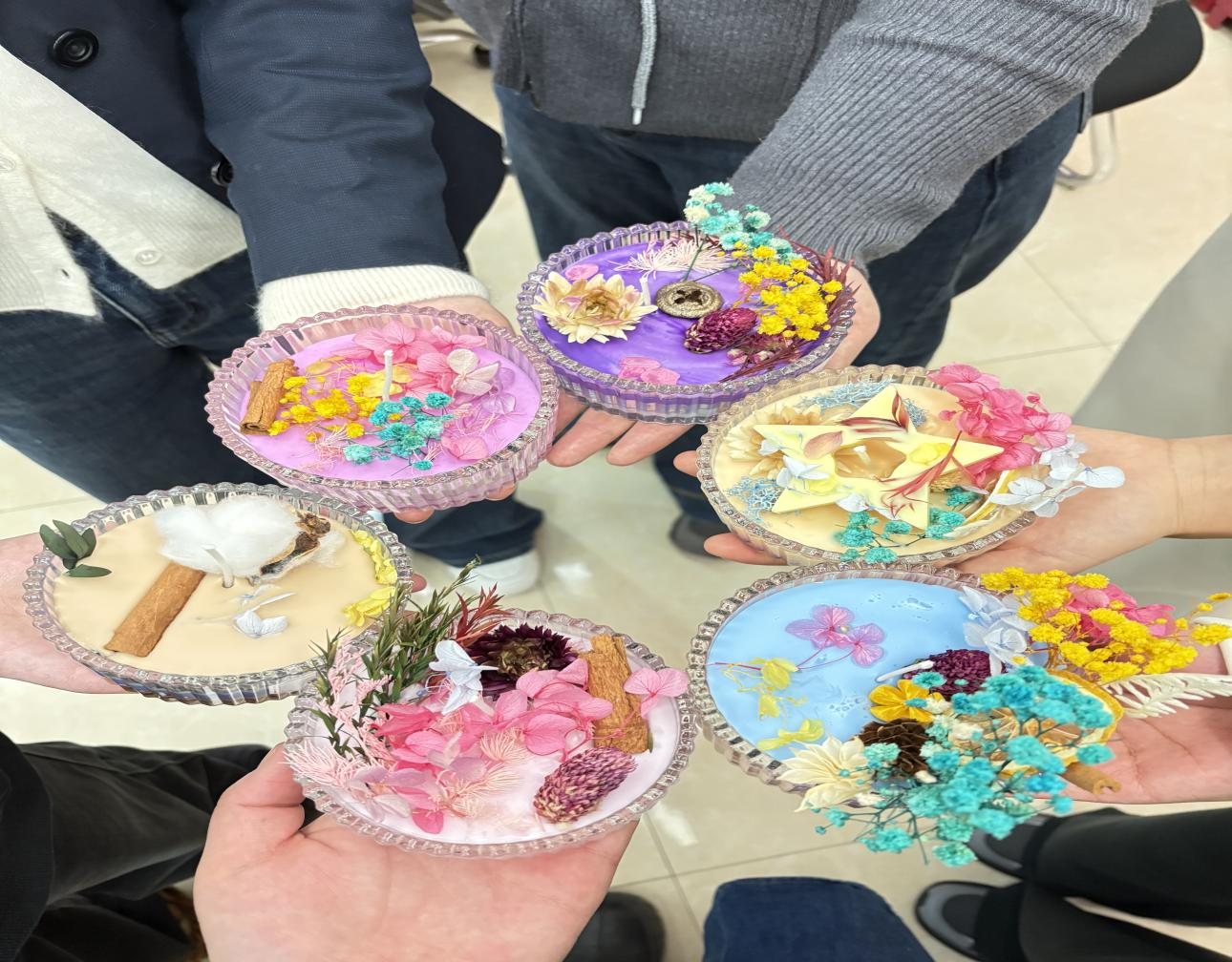 蘭州分公司活動(dòng)現(xiàn)場(chǎng),大家紛紛動(dòng)手嘗試,挑選自己喜歡的精油,緩緩滴入融化的蠟液中,在適當(dāng)位置擺放精心挑選的干花。從選材、調(diào)配精油,到注入模具、裝飾蠟燭,每一步都充滿了創(chuàng)意與樂趣。女職工們表示,這次活動(dòng)不僅讓她們學(xué)會(huì)了香薰蠟燭的制作技巧,更讓她們?cè)诿β档纳钪姓业搅似痰膶庫(kù)o與放松。通過(guò)香氣感受文化的魅力,進(jìn)一步加深了對(duì)彼此的理解與尊重。
