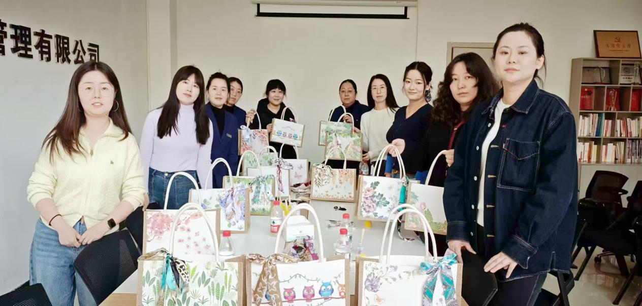 物業(yè)公司提前準(zhǔn)備了素色麻布包、防水膠、剪刀、復(fù)古花紋布料及裝飾配件,并推送學(xué)習(xí)視頻。女職工們圍坐在一起,先根據(jù)自己的喜好挑選花紋布料,將其裁剪成合適的形狀,再用防水膠仔細(xì)粘貼在麻布包表面,有的搭配復(fù)古碎花圖案,有的拼接幾何線條,還有的點(diǎn)綴小珍珠和絲帶,每個(gè)人都專注地設(shè)計(jì)著屬于自己的獨(dú)特包袋。