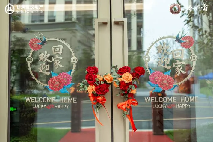經(jīng)過盛裝布置,園區(qū)沿途一路鋪裝紅毯,枝頭掛滿紅燈籠,單元門口點(diǎn)綴燦爛花束,隨處可見“歡迎回家”的標(biāo)語,“回家”的暖流直抵人心。