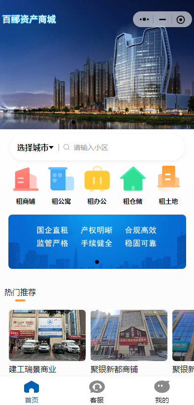 “百酈云商”小程序聚焦租賃市場(chǎng)需求,以置業(yè)公司蘭州片區(qū)、天水片區(qū)及河西片區(qū)為依托,以資產(chǎn)線上展示與客戶(hù)高效對(duì)接為核心,精心布局商鋪、辦公、公寓、倉(cāng)儲(chǔ)以及土地五大板塊,通過(guò)租賃及銷(xiāo)售為商業(yè)、娛樂(lè)、辦公、倉(cāng)儲(chǔ)等不同領(lǐng)域的項(xiàng)目開(kāi)發(fā)提供空間支持。