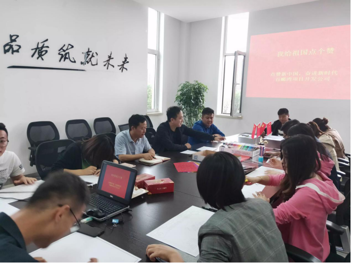 9月9日下午,百酈灣項(xiàng)目臨時(shí)黨支部在營(yíng)銷中心會(huì)議室組織開(kāi)展“我給祖國(guó)點(diǎn)個(gè)贊”制作趣味手抄報(bào)活動(dòng),置業(yè)公司工會(huì)主席、副總經(jīng)理、百酈灣項(xiàng)目開(kāi)發(fā)公司經(jīng)理石磊與項(xiàng)目公司14名員工共同參與了活動(dòng)。
