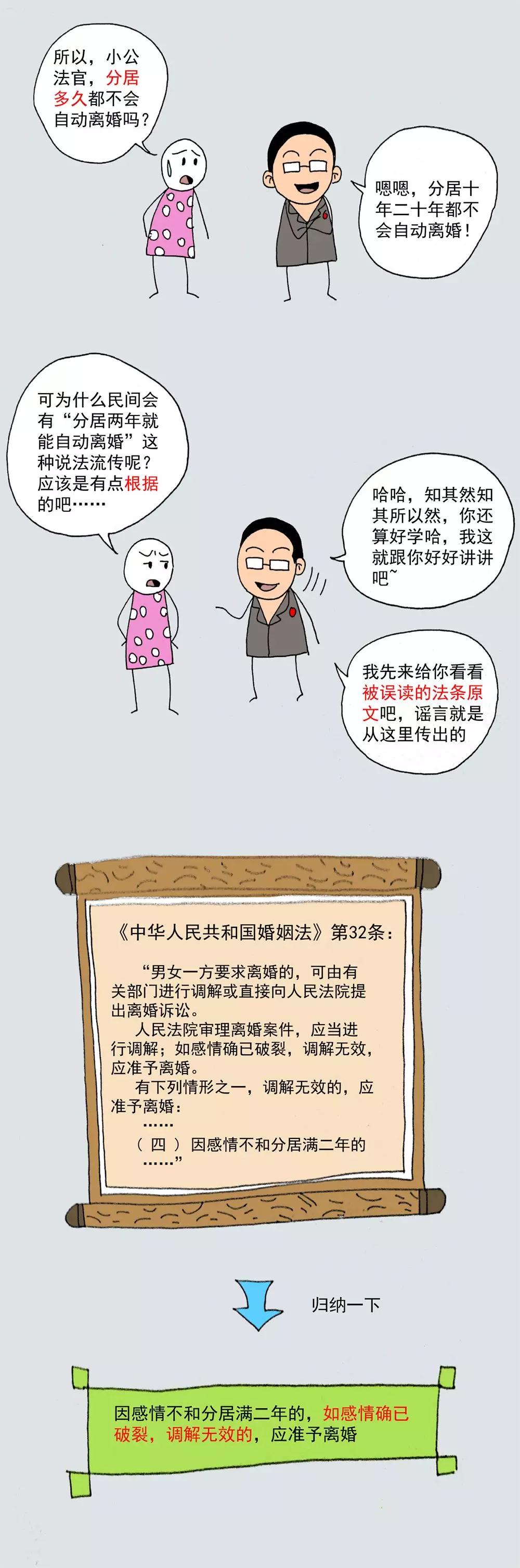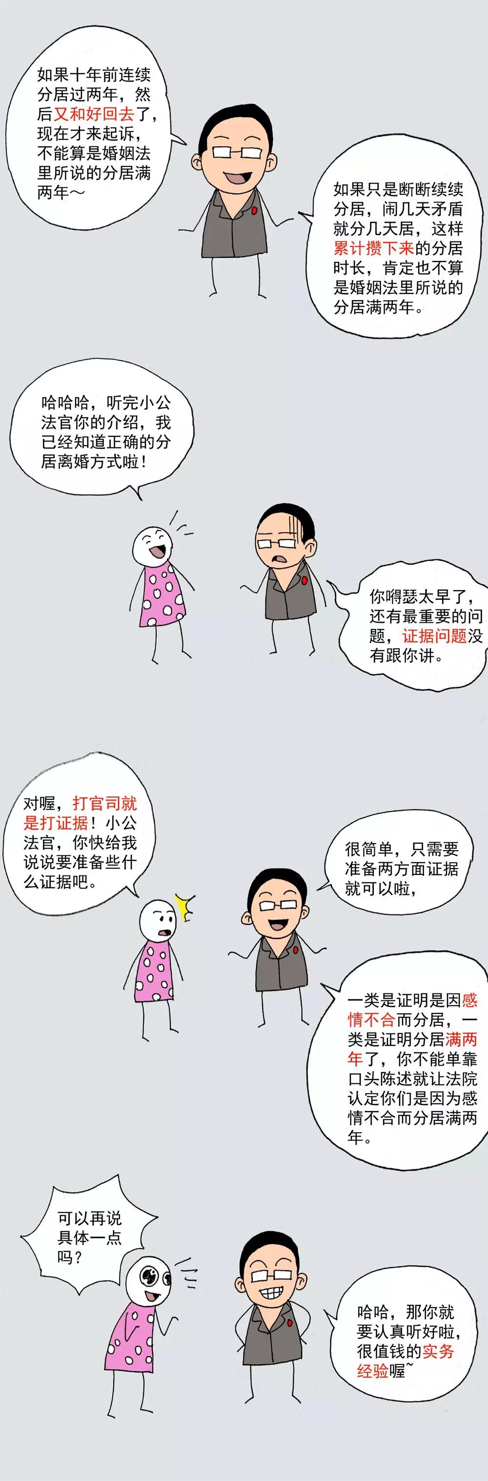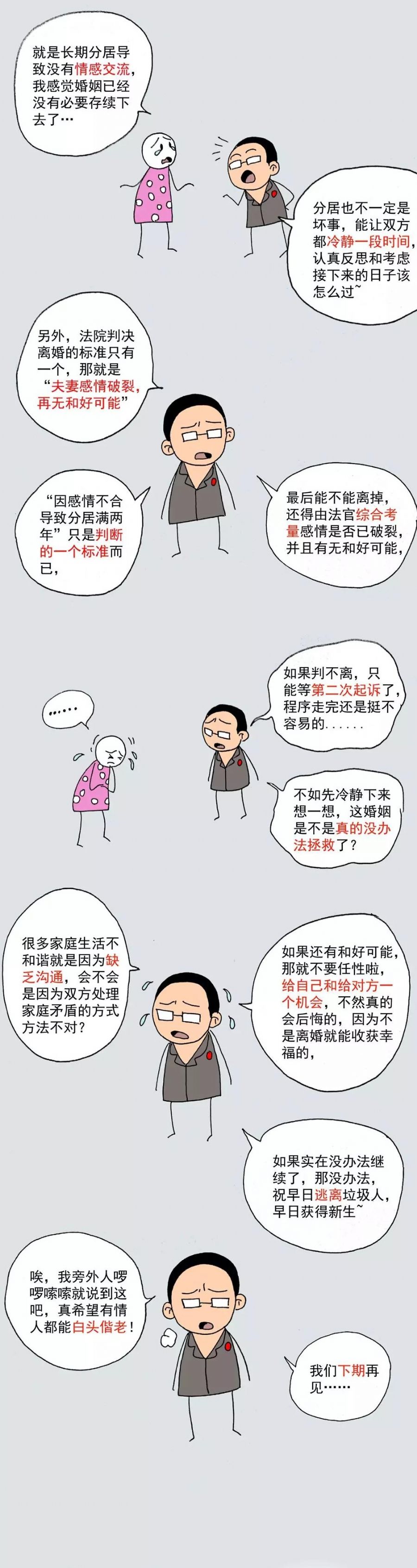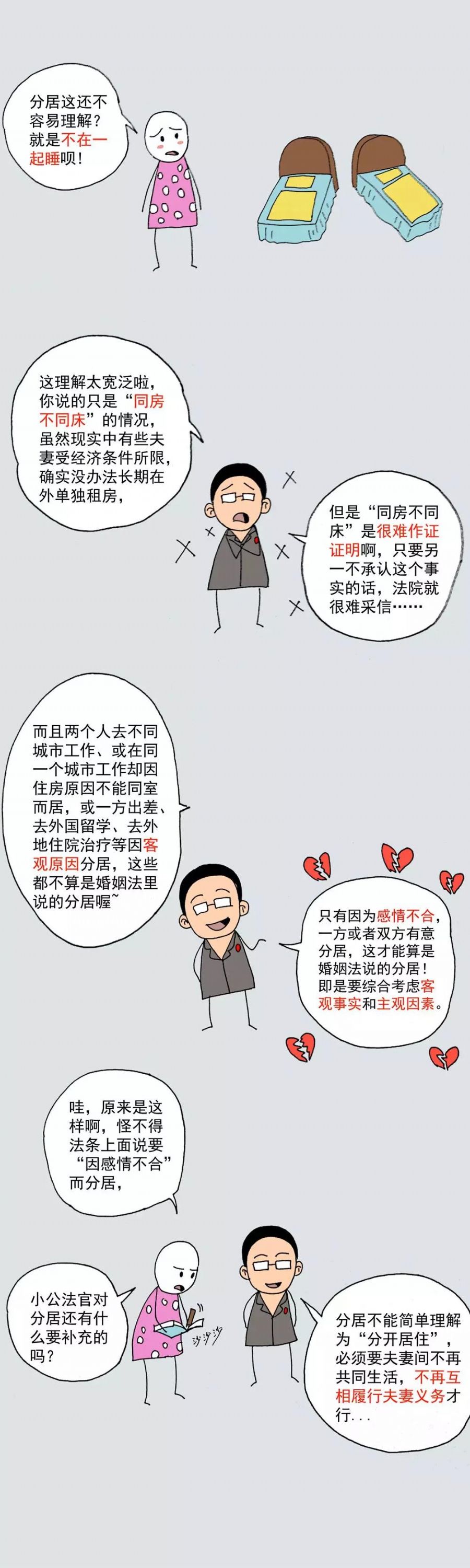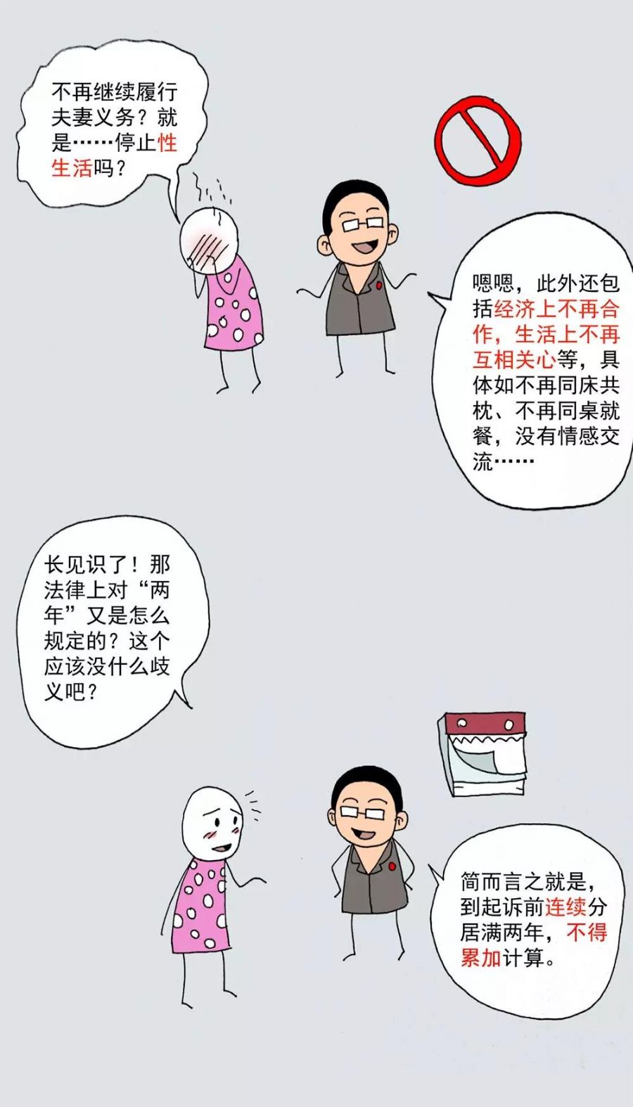 7.因感情不和分居已滿3年,確無和好可能的,或者經(jīng)人民法院判決不準(zhǔn)離婚后又分居滿1年,互不履行夫妻義務(wù)的。
