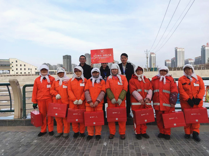 當(dāng)日,武威分公司團(tuán)隊(duì)為寒冬里堅守在崗位的環(huán)衛(wèi)工人、城管、交警們送上圍巾、暖寶寶、保溫杯等一份份暖心禮物,讓這些城市的守護(hù)者們感受到來自大家庭的溫暖。