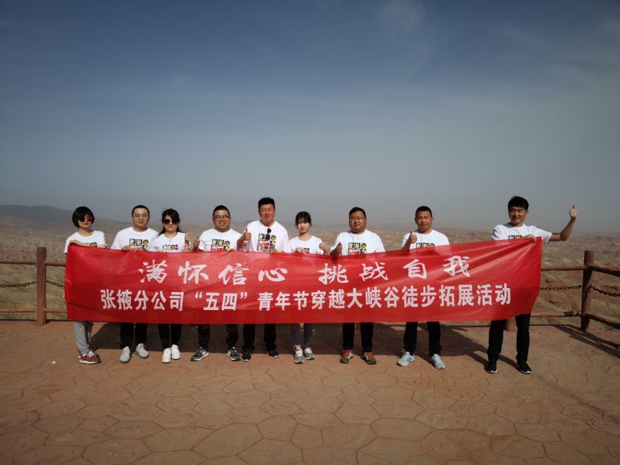 今年是五四運動100周年,為響應黨的號召,鼓舞青年員工砥礪奮進,張掖分公司組織開展了“滿懷信心,挑戰(zhàn)自我”的主題徒步拓展活動。